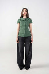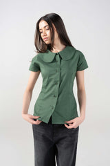 Add a touch of whimsical elegance to your wardrobe with a shirt that prioritizes distinctive tailoring. This piece features a prominent princess (Peter Pan) collar, creating a soft, rounded neckline that lends a sophisticated yet playful energy to your look. The slub linen blend provides a natural, organic texture that keeps you cool while maintaining a structured, high-end drape.